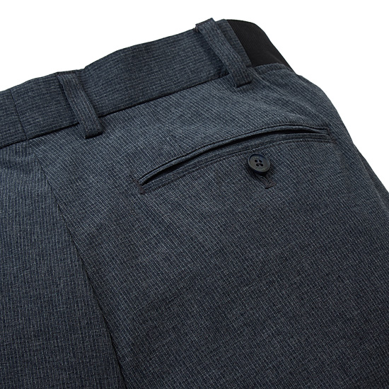 - 세로 핀 스트라이프 패턴은 은은하게 적용한 남성 팬츠.