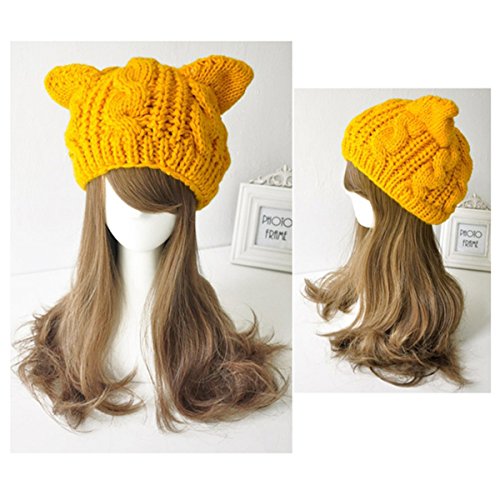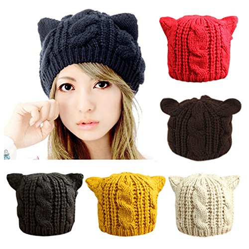 Women Girls Cute Cat Ear Knitted Beanie Fashion Winter Warm Ski Hats Caps