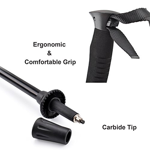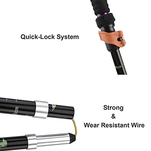 Features: Flip-Lock system: Easy to adjust the pole from 47"(120 cm) to 53"(135 cm) Handle : Ergonomically designed EVA foam handle is non-slip, sweat-absorbent and nontoxic. Wrist strap: Adjustable nylon wrist strap, can relax or tighten, can be easily adjusted to the required degree of firmness. Compact and Easy to Carry :Folds for easy storage and portability into the carry bag Collapsible Trekking Poles offers excellent resistance under all weather conditions,it is suitable for climbing, hiking, skiing, walking and other outdoor activities. Easy to use, comfortable, suitable for mountaineering, hiking, skiing and other outdoor activities Distribute the load, take stress of your body add support, balance walking pace, reduce sports injury, increase speed, as a support for shelters or self-defend when danger etc. Specifications: Section: 5 sections Material of Stick tip: Carbon steel Pole material: aluminum alloy Handle Material: EVA Foam Hight:47 - 53 inches (120 -135cm) Portable height:14.57 inches (37 cm) Weight:0.62lb (280g) Color: purple What's included: ? 1 x Walking poles? ? 1 x Strap Carrying Bag 0 |