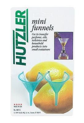 -. Feature : EW - TINY 1 ounce PLASTIC FUNNELS, assorted see-thru colors, USE TO TRANSFER PERFUME, OILS, TOILETRIES, AND HOUSEHOLD PRODUCTS INTO SMALL CONTAINERS. 1.5" top, 2" overall height, 1/16" bottom.