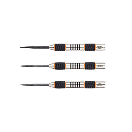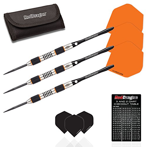 Set of 3 x 24g - 90% premium quality Red Dragon tungsten darts; Red Dragon black laser etched aluminium shafts & 2 sets of Hardcore extra thick flights; Red Dragon Tri Fold Pro wallet; Amberjacks are distinguished by their distinctive black and orange styling; Red Dragon checkout card