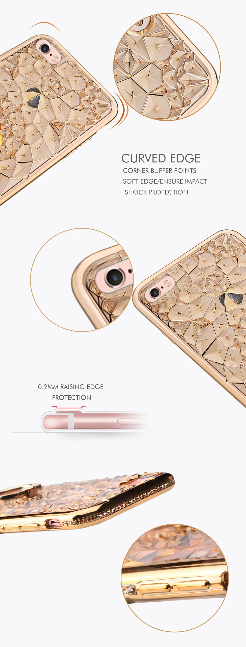 Function:3Luxury 3D Diamond Sparkles Flowers Soft TPU Crystal Plating