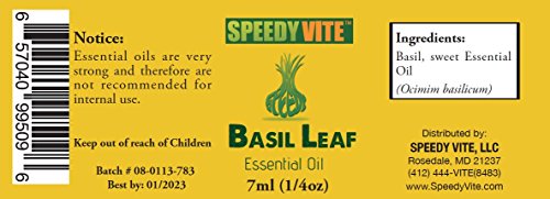 SpeedyVite Basil Leaf Essential Oil 1/4 oz (7ml) Aromatherapy oil 100% Pure - No carrier oils
