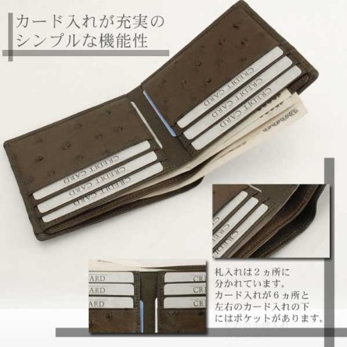 -. Title : オーストリッチ 二つ折り財布 メンズ 本革 レザー