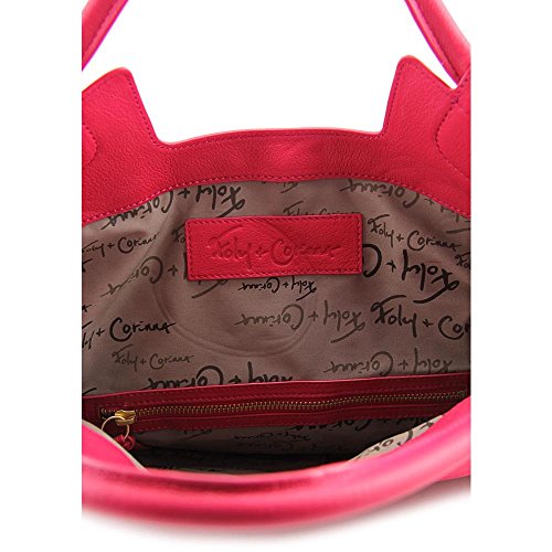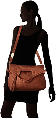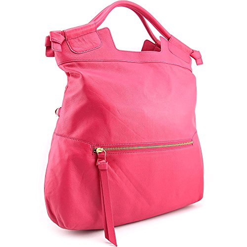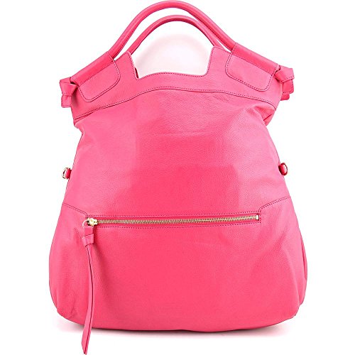 -. Feature : Fold-over satchel featuring silver-tone hardware and exaggerated zipper pull / Adjustable/removable cross-body strap / One interior zip and two slip pockets. Two exterior zip pockets.