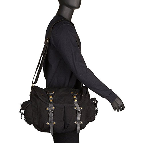 -. Brand : Vagabond Traveler -. Department : unisex-adult -. Feature : Vintage brass fitting hardware; 16oz durable thick canvas / Two large front pockets 9" x 5.5" under flat over panel with button closure / Zipper closure with internal zipper pocket, two side pockets, and one back pocket / Art panel design, cotton canvas, and genuine leather parts / Adjustable strap with approximate 22" strap length -. Label : Vagabond Traveler -. Manufacturer : Vagabond Traveler -. PackageQuantity : 1 -. ProductGroup : Apparel -. ProductTypeName : LAGE -. Publisher : Vagabond Traveler -. Studio : Vagabond Traveler -. Title : Vagabond Traveler Large Casual 17" Messenger Shoulder Bag