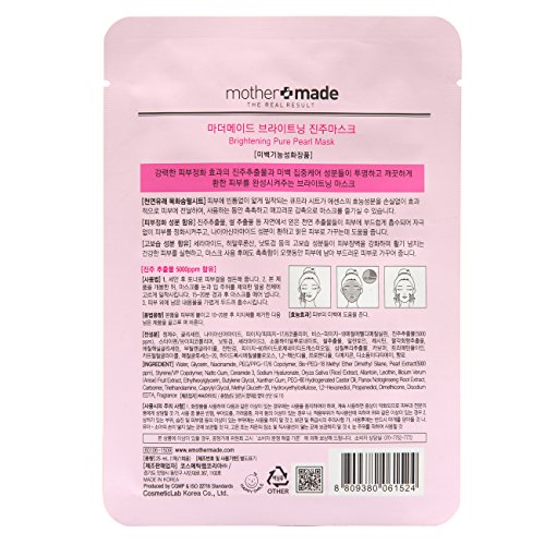 mothermade®'s Brightening Pure Pearl Facial Mask is a Premium Quality facial sheet mask, specially formulated to be FIRMING, BRIGHTENING AND HYDRATING with rich amount of Pearl Extract as well as other purifying ingredients. Pearl extract contains more than 20 kinds of amino acids and various minerals, helping skin feel resilient and firm. All the while, its function of removing the dullness, dark spots, dark circles brightens up the skin tone. Our mask's moisturizing Ceramides, Hyaluronic Acids enrich and nourish the skin, presenting spa quality results. The Cupra mask sheet made of downy hair of 100% cotton seeds is skin-friendly and tightly adhering to the skin, effectively delivering softness and ingredients. This dermatologically proven to be non-irritating mask is great for all skin types, preventing the water loss and aging.Feature