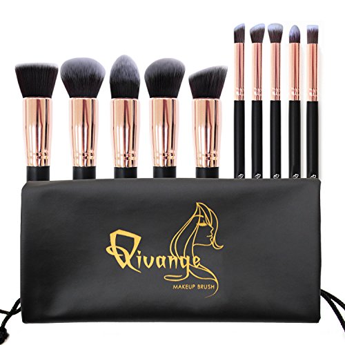 -. Title : Qivange Makeup Brushes with Pouch, Black with Rose Gold (10 Pieces)