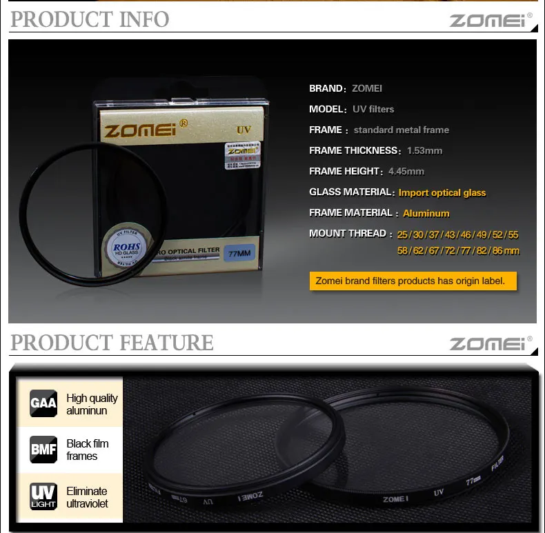 Product Name:zomei uv filter