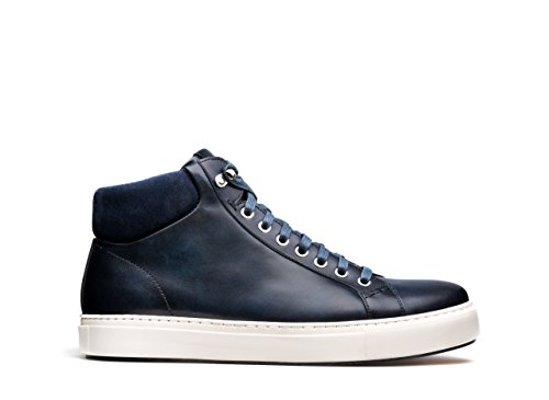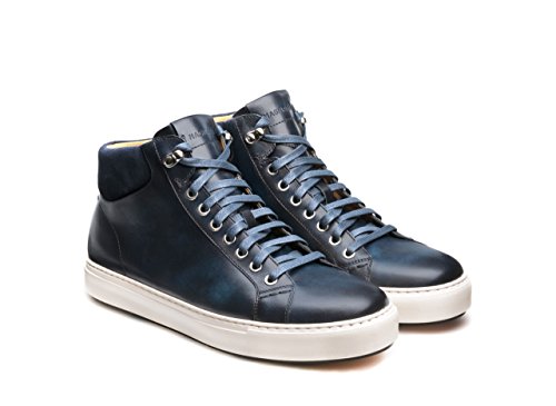 Product DescriptionHand painted calfskin mid-top sneaker with suede collar0