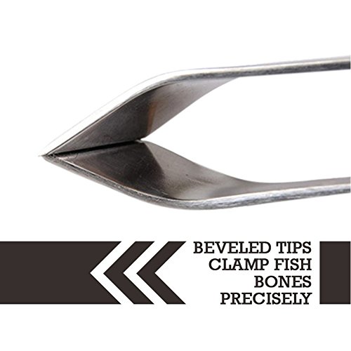 - --- THE EASIEST WAY TO REMOVE FISH BONE --- Removing fish bones has never been this easy before. Fish Bone Tweezers (TM) comes with beveled tips that align when squeezed to safely remove all bones from your fish.