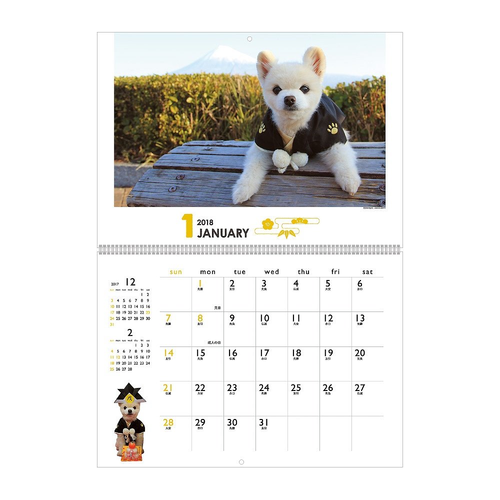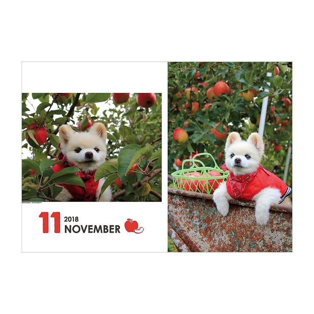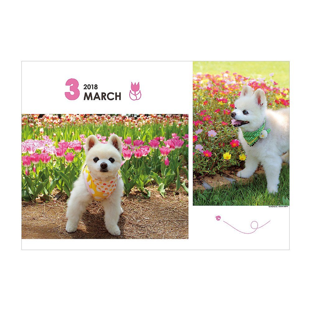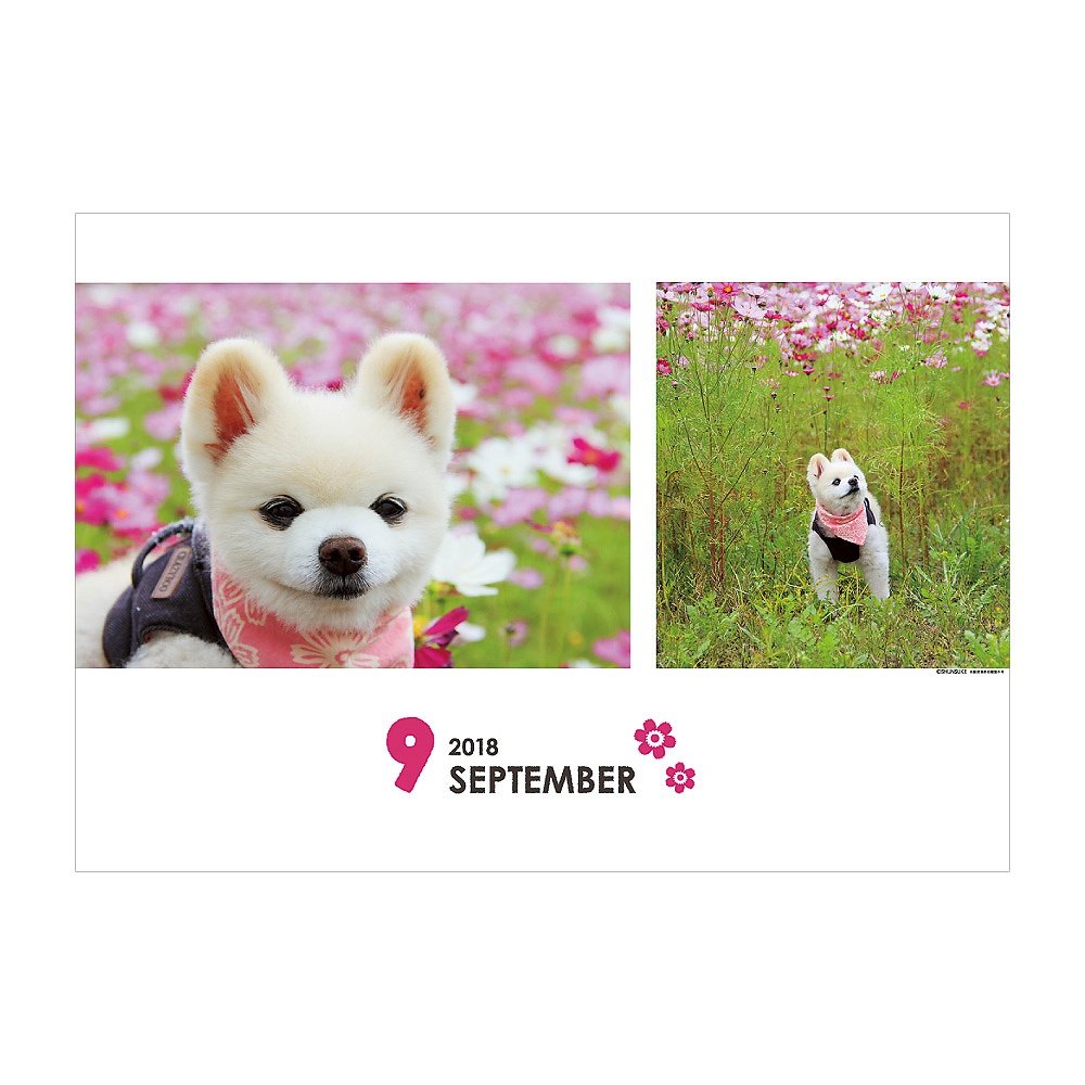 The cuteness like a stuffed doll is very popular on Twitter! It is a calendar of Pomeranian · Shunsuke of Shiba Inu cut.
