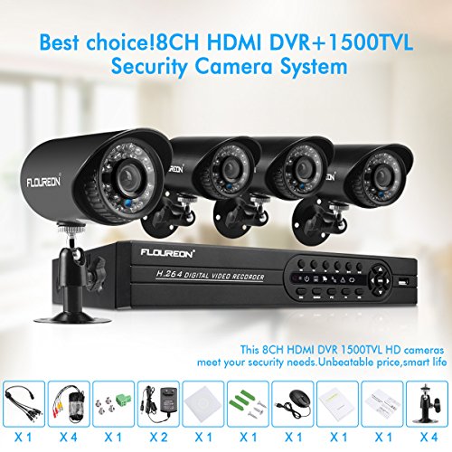 -. Binding : Kitchen -. Brand : Floureon -. Color : Clear -. EAN : 0712073241470 -. Feature : The Floureon 4 Channel DVR security kits with 4 x 1500TVL 720P HD bullet weatherproof cameras for all day and night monitoring / The 1080N AHD DVR can support TVI/CVI/AHD/Analog/ONVIF IP Camera all the same time. You may connect it with any security cameras. / 4x 1500 TVL high resolution security cameras provide clear and accurate video viewing. / P2P technology paves the way for remote access on your phone/tablet/PC at anytime . You may view the security of your house/apartment/garden at any place where you are / Note: This DVR security system doesn't come with the built-in HDD( hard driver disk). You may purchase an extra one if you want to get it record. -. IsAutographed : 0 -. Label : Floureon -. Manufacturer : Floureon -. Model : IQV1FLEC-ZLYUS-F1 -. ProductGroup : Home -. ProductTypeName : HOME -. Publisher : Floureon -. Size : 4CH+1500TVL -. Studio : Floureon -. Title : FLOUREON 4CH DVR Security System1080N AHD DVR + 4 X Outdoor 1500TVL 720P Bullet Security Cameras Night Version (4CH+1500TVL) -. UPC : 712073241470