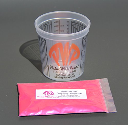 25g Fuchsia Candy Paint Pearls, a Metallic Paint Pigment - Hot Pink Paint Powder with 8 oz. Mixing Cup