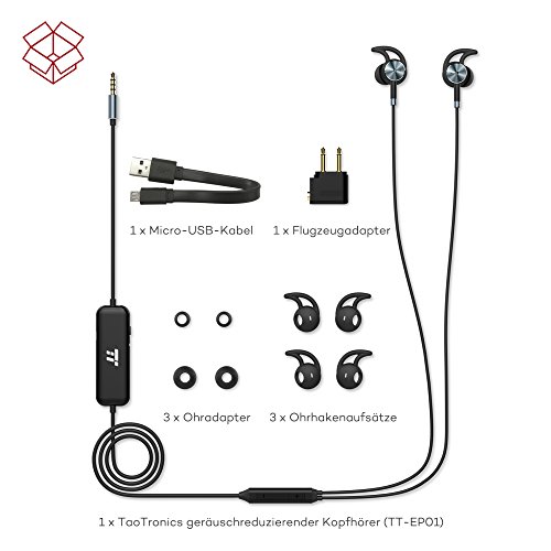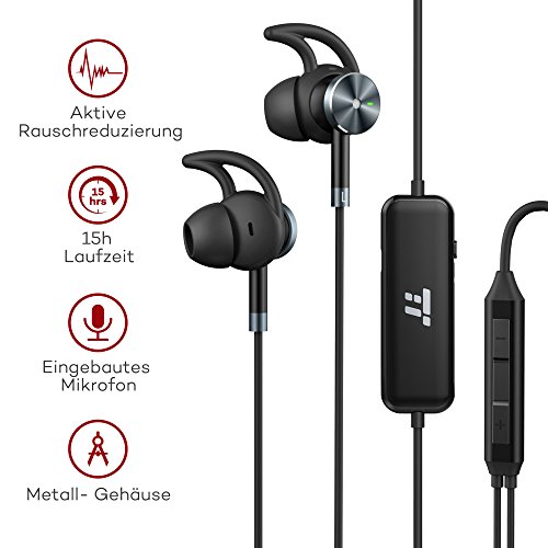 TaoTronics Active Noise Cancelling Kopfhorer, verkabelt Kopfhorer in-Ear mit In-Ear mit 15Stunden Spielzeit und integriertes Mikrofon (Gerauschunterdruckung, Konstruktion aus Alum