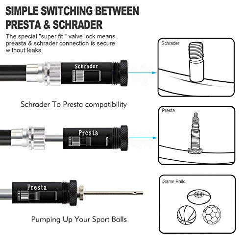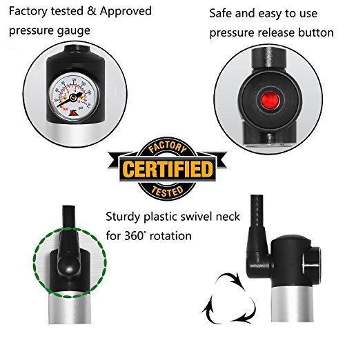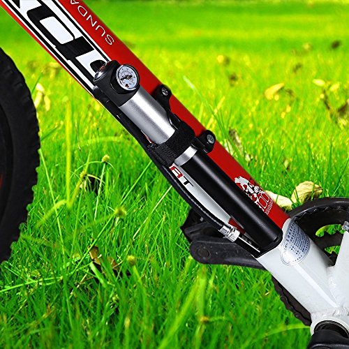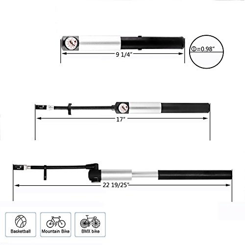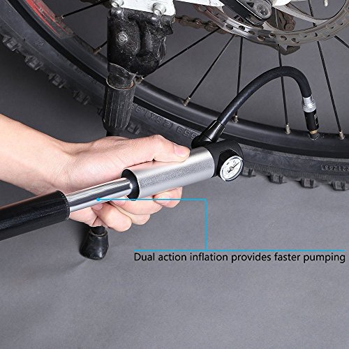 -. Brand : WOVTE -. Feature : BUILT IN PRESSURE GAUGE - Inflate tire to manufacturers recommendations. Prevent damage from over inflation. No need to use an external gauge. HIGH PRESSURE - With the 210 psi / 15 bar CAPACITY you can easily inflate any bike tire or basketball football etc in a short time. -. Label : WOVTE -. Manufacturer : WOVTE -. MPN : WOV0854 -. PartNumber : WOV0854 -. ProductGroup : Sports -. ProductTypeName : OUTDOOR_RECREATION_PRODUCT -. Publisher : WOVTE -. Studio : WOVTE -. Title : WOVTE Mini Bike Pump with Pressure Gauge, 210 PSI Premium CNC Aluminum Mini Portable Air Bike Pump with Hose & Frame Mount Kit Fits Presta & Schrader for All On & Off Road Tires