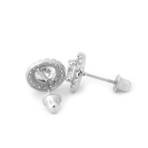 - Feature : These earrings are made of solid 14k gold (available in yellow or white gold), with clear cubic zirconia cz stones. (high quality diamond simulants). / Earrings are 7.7 mm wide. Central stone measures 4.5 mm. Weight: 1.1 grams. Total carat weight: 1.00 ct. / Earrings come with little 14k screwbacks, a gift box and free shipping.