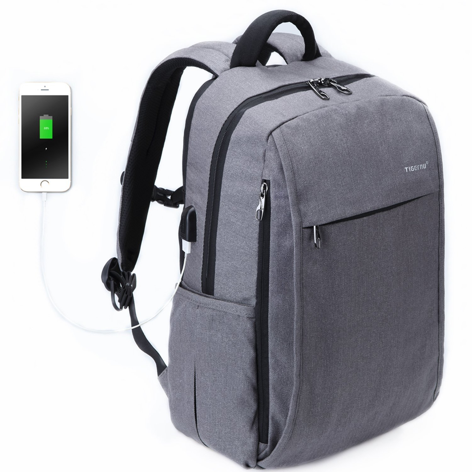 There is a USB port on the side of the backpack table, with cable on the inside, can be connected to the mobile battery.