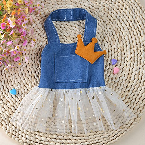 -. Feature : √ Material: Jeans+Yarn, Size: / √ Durable, comfortable, breathable enough, easy to wear and clean. / √ Pets' skin would be easy to get sunburnt after shaving, and it would help reducing dropping hair in the house and avoid staining grass or other dirt when walking your pet. / √ Suitable for small dogs, such as Chihuahua, Poodle, Cup Poodle, Pomeranian, Yorshire Terrier, Bichon Frise, Cocker Spaniel and so on. / √ Fashion design, Comfortable material, Sweet pattern, it will make your pet looks more Popular and Lovely.