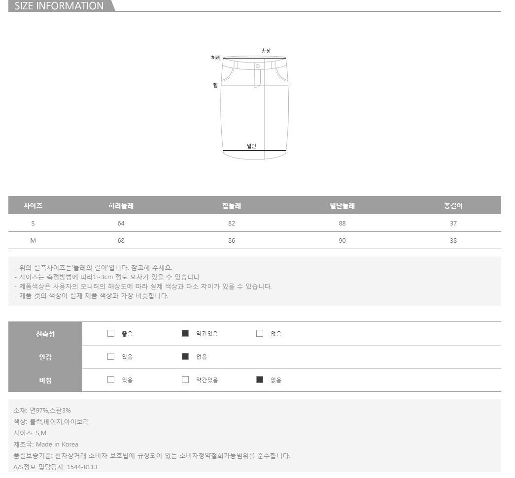 S-허리둘레 64 / 힙둘레 82 / 밑단둘레 88 / 총길이 37