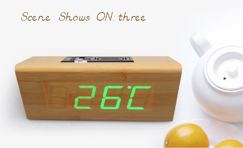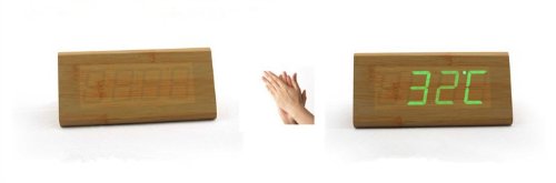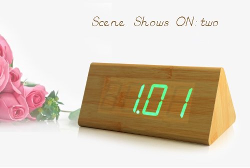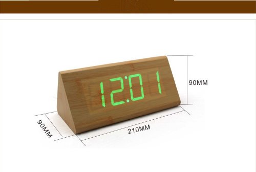- Title : GREENWON Fashion Bamboo Triangle Green LED Wooden Imitation Clock Digital Wood Alarm Clock Desktop Temperature Time Date Display Voice and Touch Activated