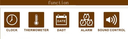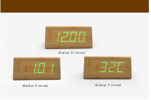 - Feature : Displays Time, Date, and Temperature alternately. / It also works in voice mode. Make some noise (clap your hands, rap on the table or pat the clock) nearby can wake it up / Time display 12-hour or 24-hour mode / Optional Three Alarm Settings with "beep" sound lasting 1 minute. / Disclaimer:This clock is made of imitation wood,not real wood.