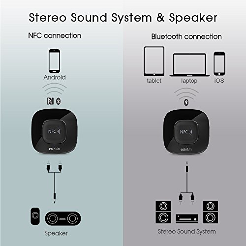 Esinkin Bluetooth Receiver, Bluetooth Audio Adapter (NFC Enabled) for Stereo Sound System with Long Range and Acoustics