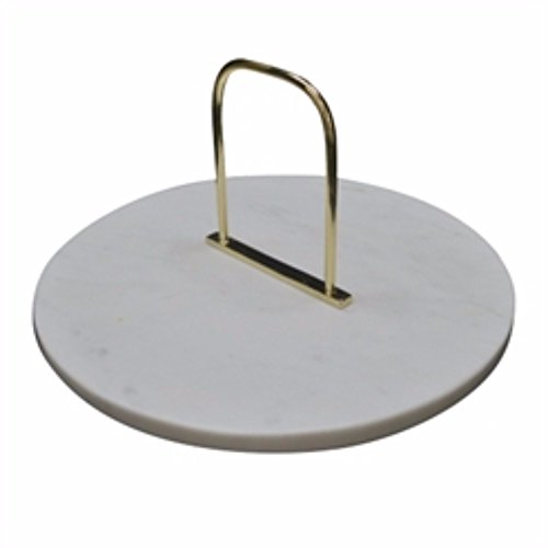 Benzara Stylish Marble Tray with Brass Handle, White