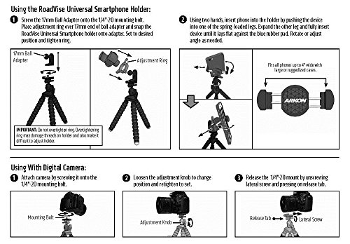 -. Binding : Wireless Phone Accessory -. Brand : Arkon -. Color : Black -. EAN : 0047407850111 -. Feature : Ideal for streaming live video on Periscope Facebook Live or other apps / 11 inch tripod mount's legs bend for stable live streaming anywhere / Phone holder accommodates phones up to 4 inches wide / 2 year limited warranty -. Label : Arkon Resources Inc. -. Manufacturer : Arkon Resources Inc. -. Model : RVTRIXL -. MPN : RVTRIXL -. PackageQuantity : 1 -. PartNumber : RVTRIXL -. ProductGroup : Wireless -. ProductTypeName : WIRELESS_ACCESSORY -. Publisher : Arkon Resources Inc. -. Studio : Arkon Resources Inc. -. Title : Arkon 11 inch Tripod Mount with Phone Holder for Live Mobile Streaming -. UPC : 047407850111