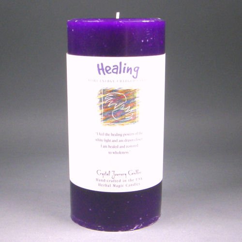 6" x 3" Crystal Journey Herbal Magic Reiki Charged Pillar Candle, Healing