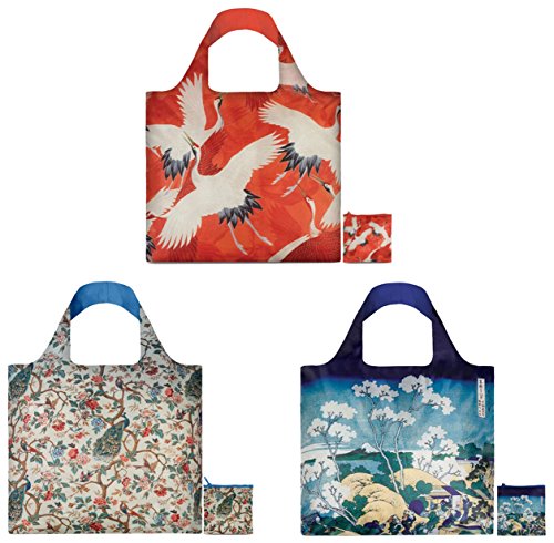 LOQI Lively Artworks Museum Reusable Bags (Set of 3), Multicolor