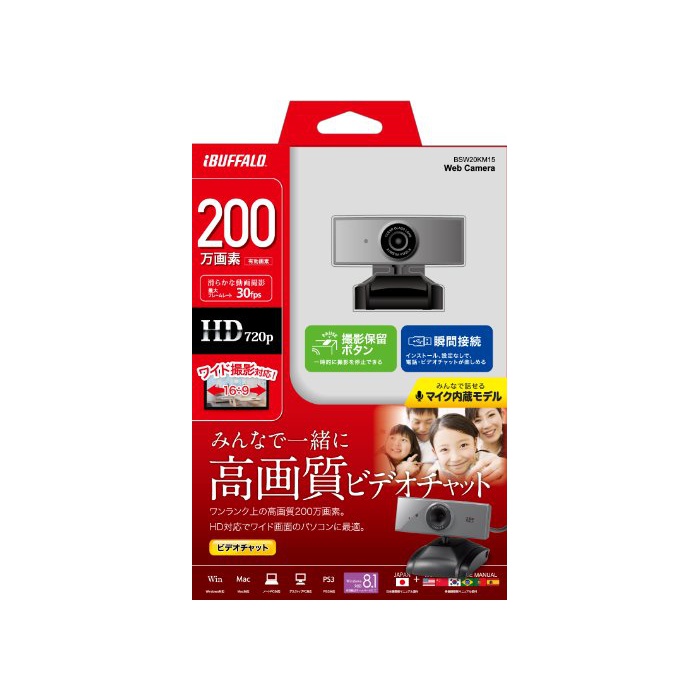 원본상품명: iBUFFALO マイク200万素Webカメラ HD720pモデル BSW20KM15シリズ