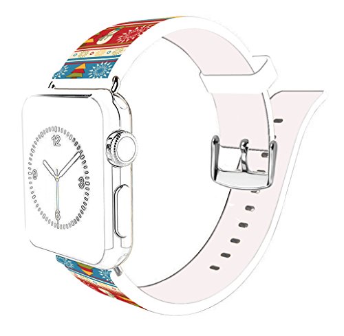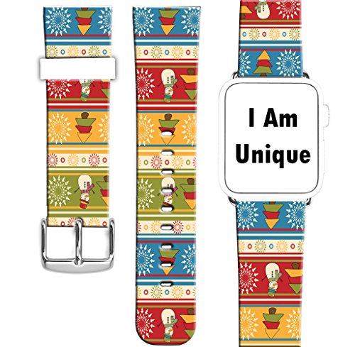 Iwatch Bands 42mm Christmas,Apple Watch Band Genuine Prime Elegant Leather Replacement Apple Watch Bands Series 1/Series 2/Series 3 - Beautiful beautiful Christmas snowman and Christmas tree