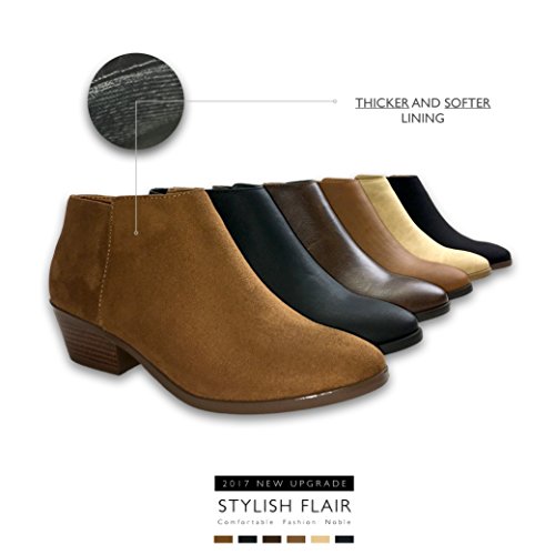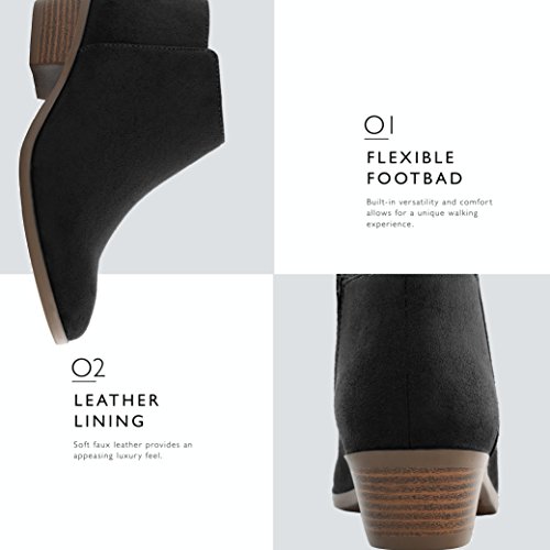 These DailyShoes Chunky Heeled PU Leather Booties come with a thick, soft inner lining that provides a comfortable feel which will keep your feet snug all day long. On the outside, the sole has excellent traction that translates even to the chunky heel of the shoe. The heel is short and stout, allowing for comfortable wear with just a bit of lift to give you the height that you desire.