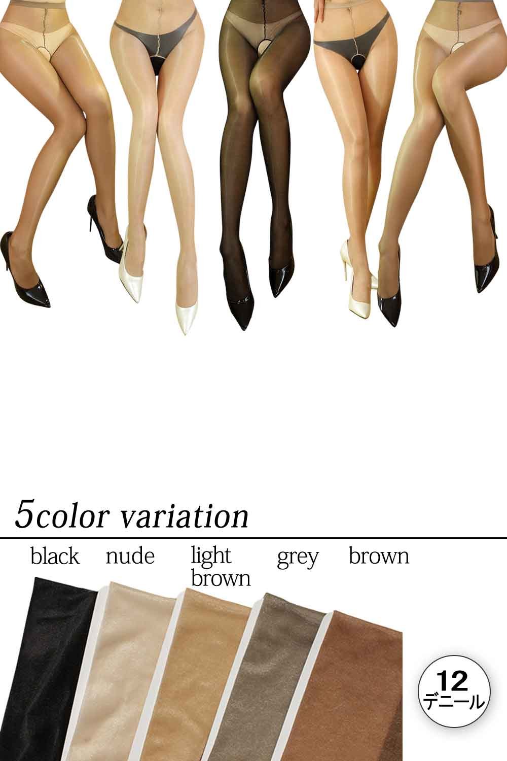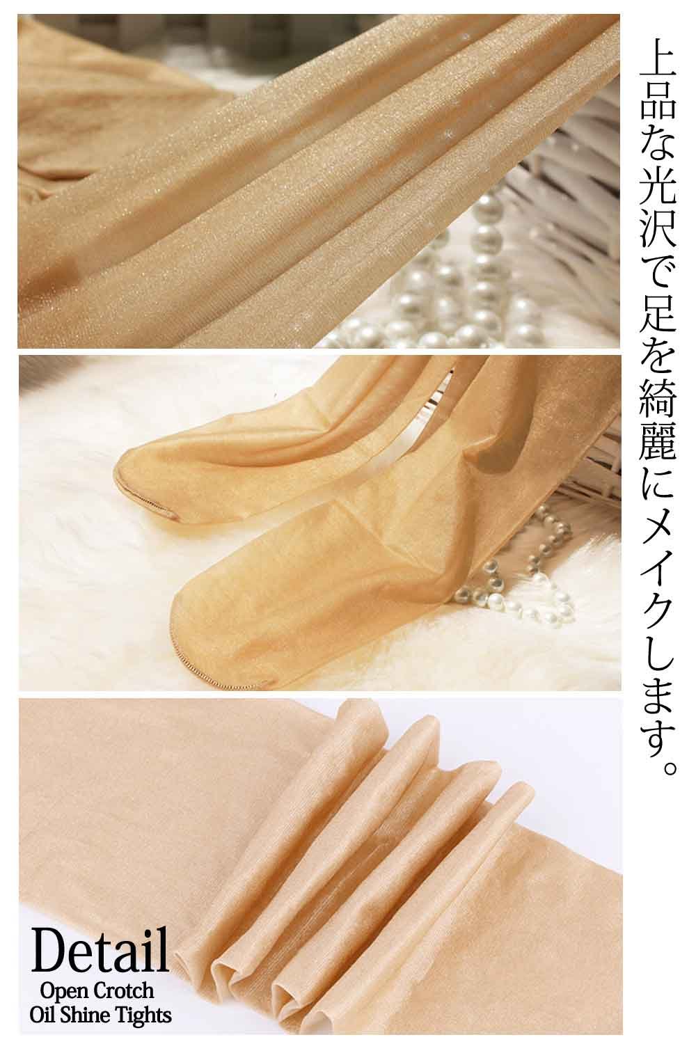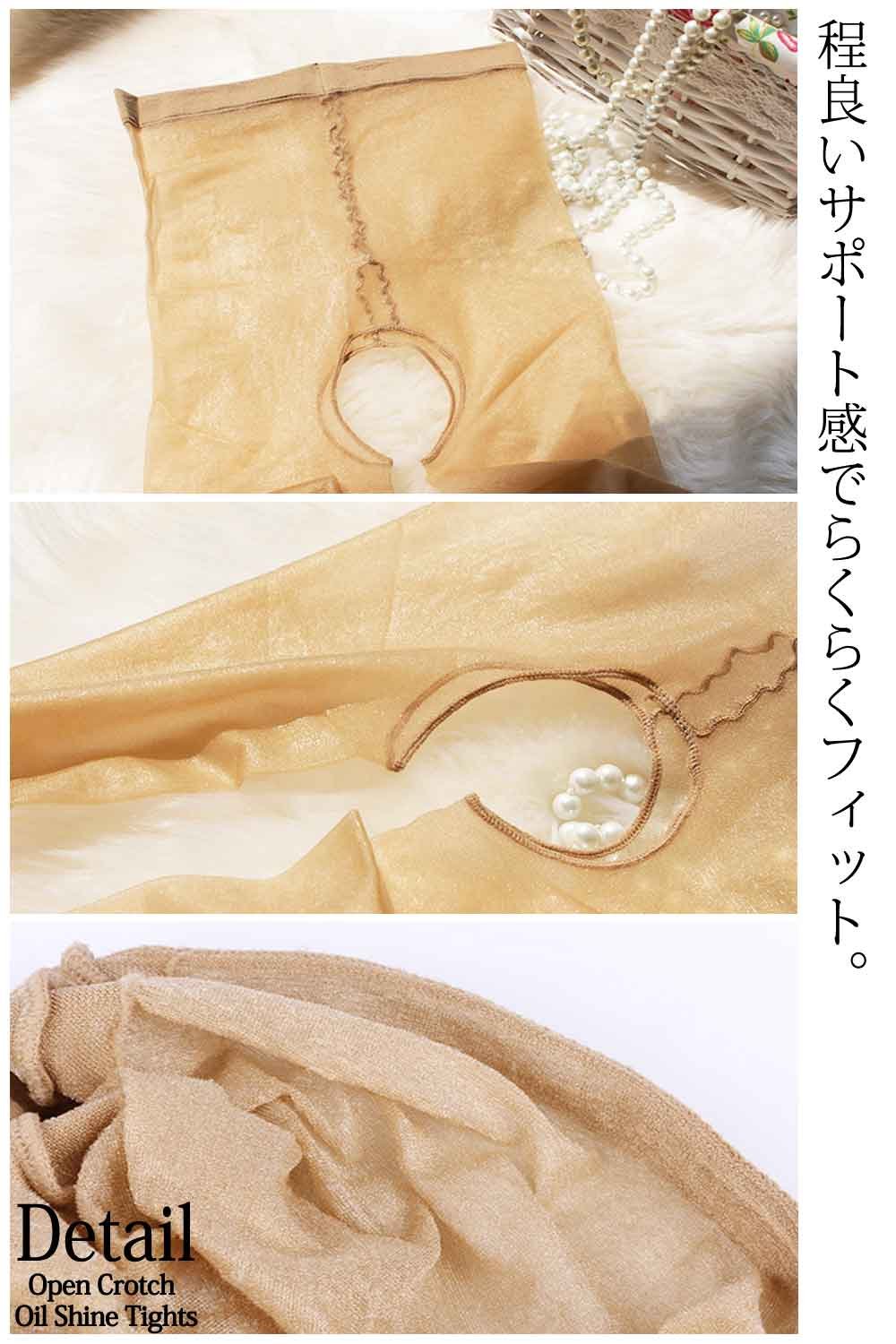 Open crotch stocking pantyhose 3 points set with smooth luster
