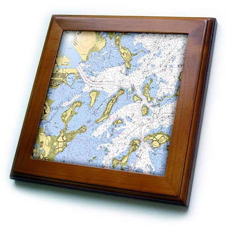 3dRose ft_204856_1 Print of Boston Harbor Nautical Chart Framed Tile, 8 by 8"