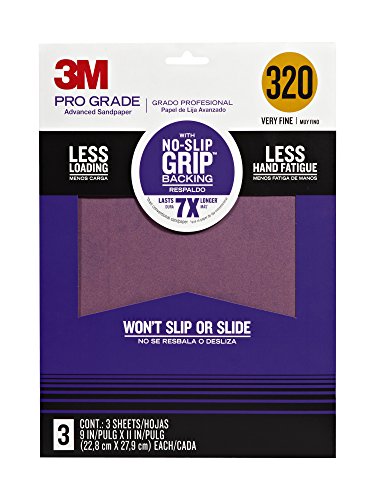 3M 25320P-G Pro Grade No-Slip Grip Advanced Sandpaper, 9 X 11-Inches, 320 Grit, 3/Pack