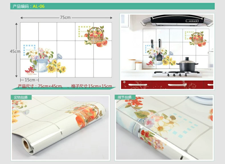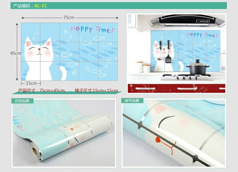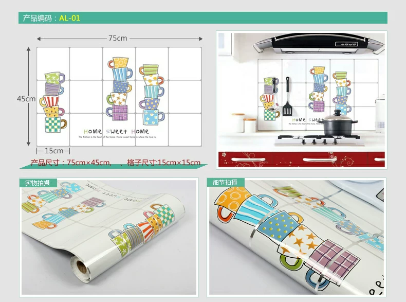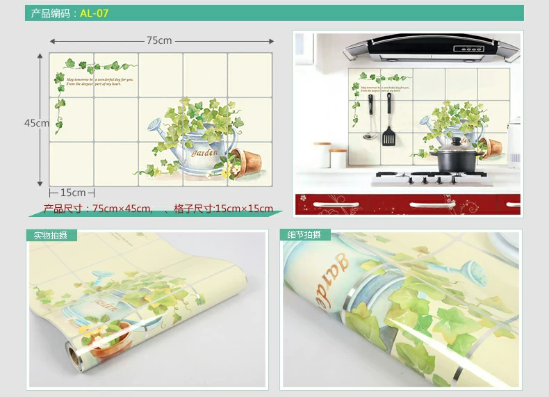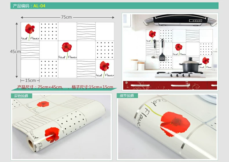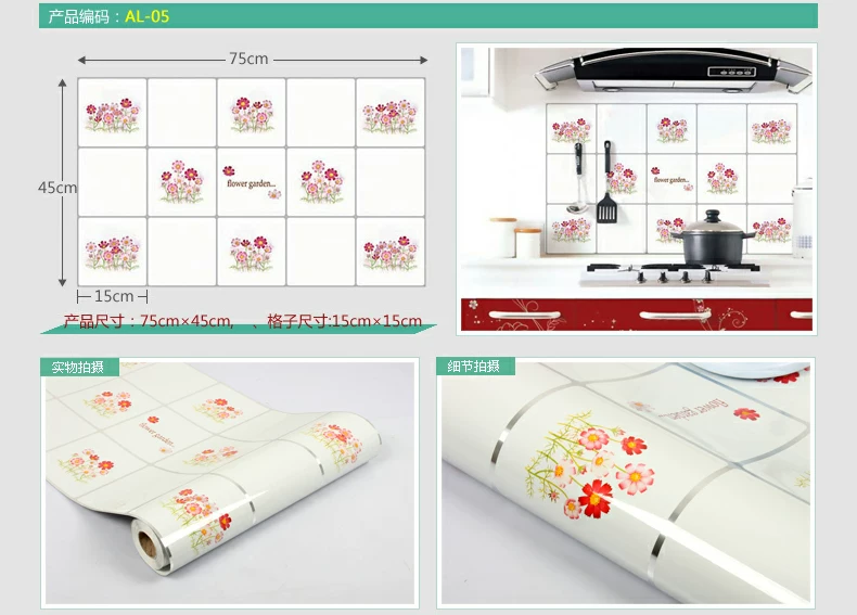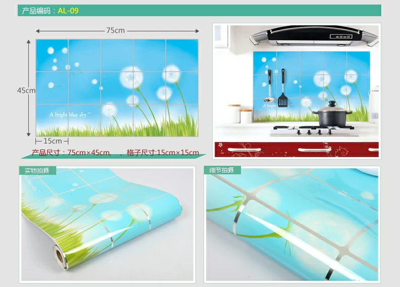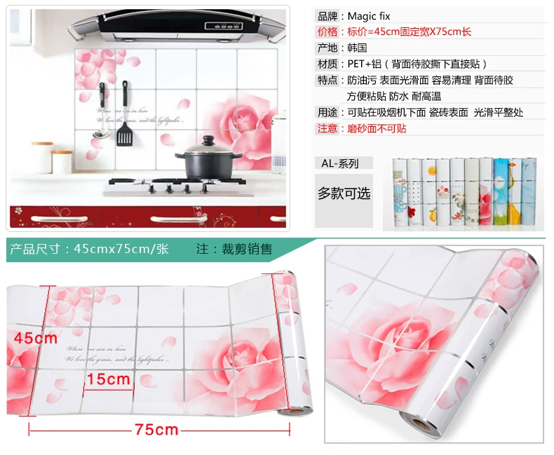 小薇灶台厨房防油贴纸特大墙贴厨房贴纸耐高温壁纸防水墙纸瓷砖贴