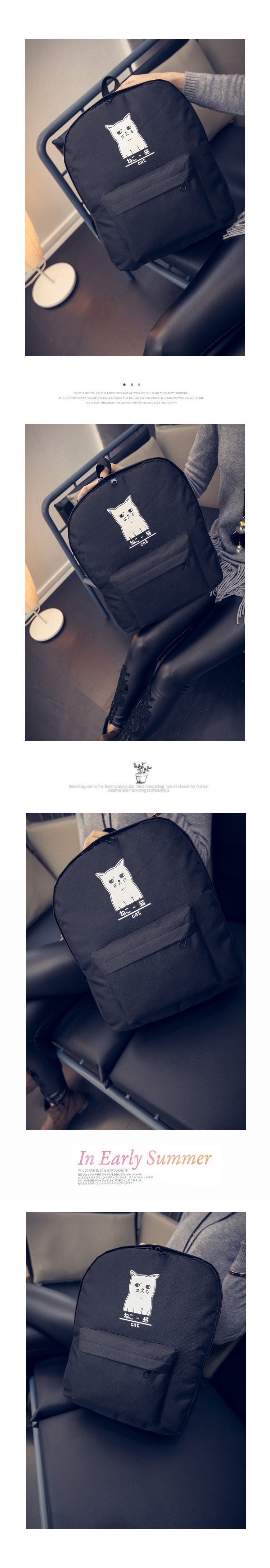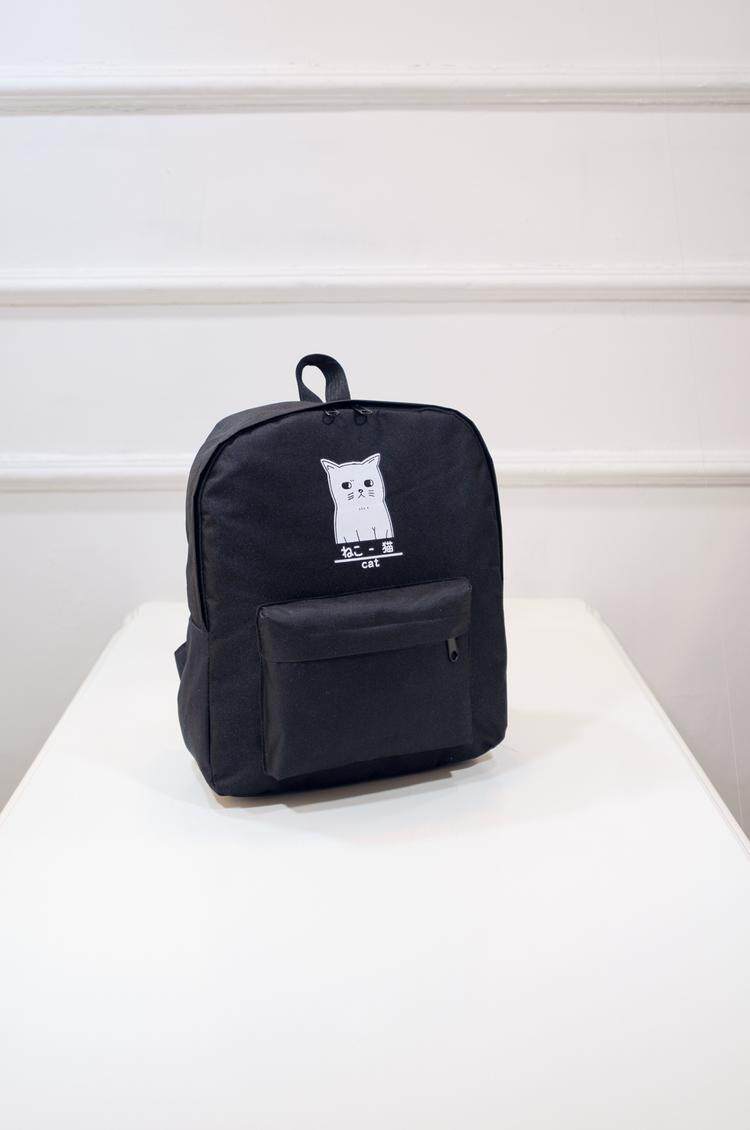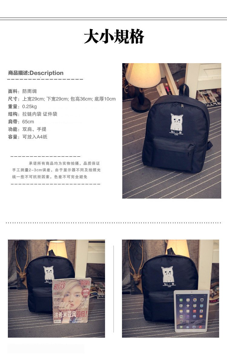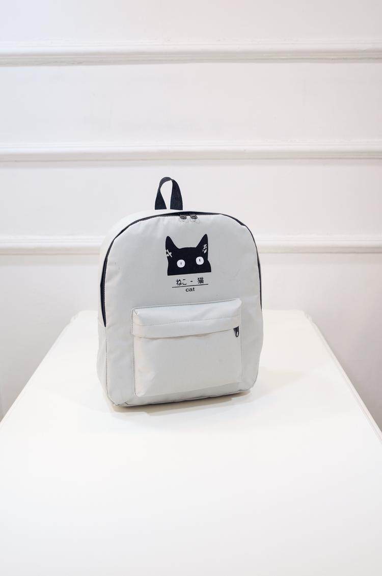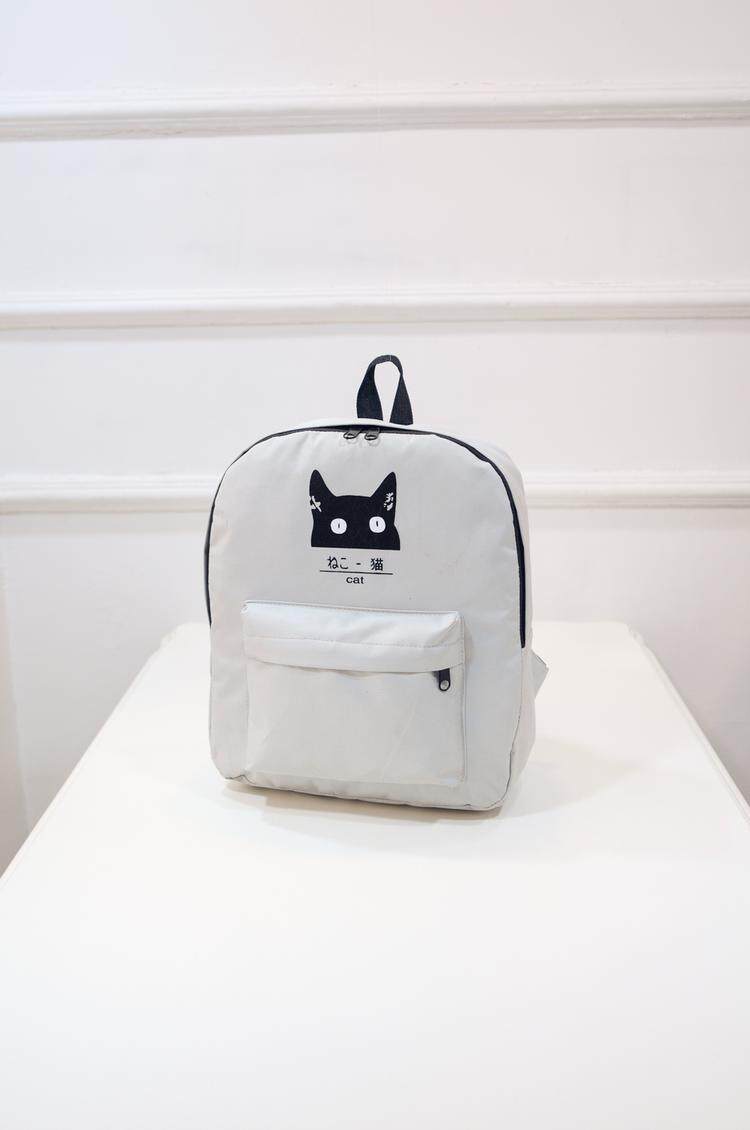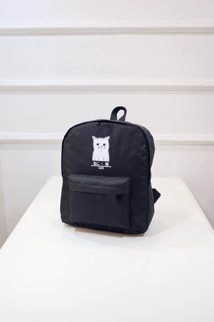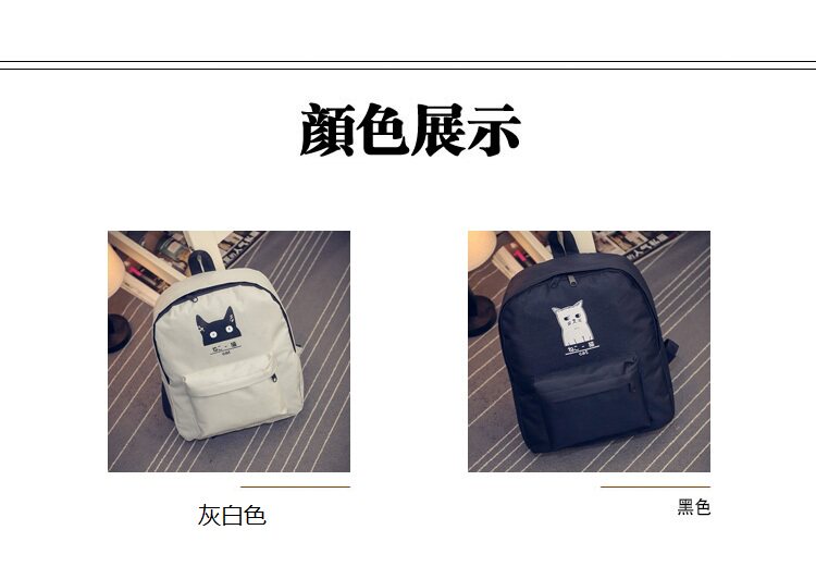 日本猫双背原宿风简约帆布背包 男女百搭个性大容量学院风书包