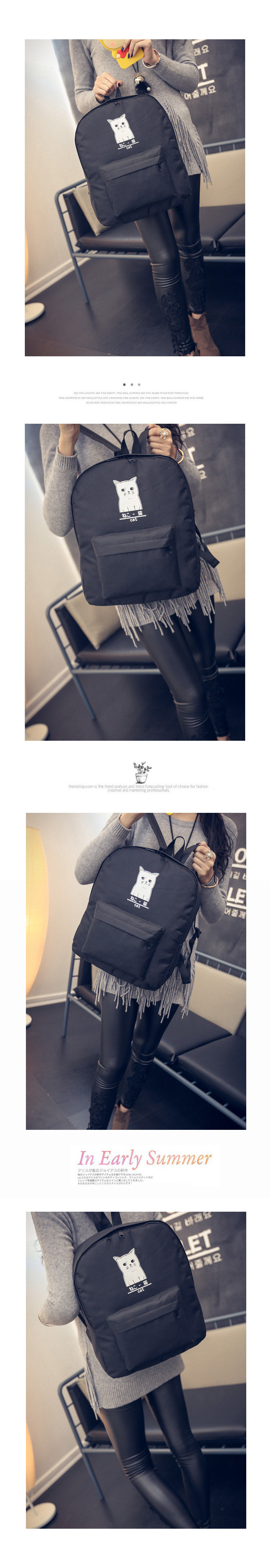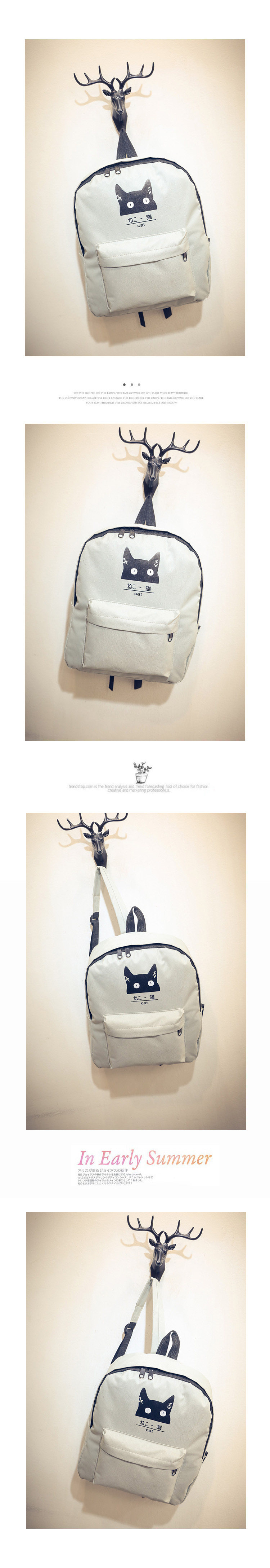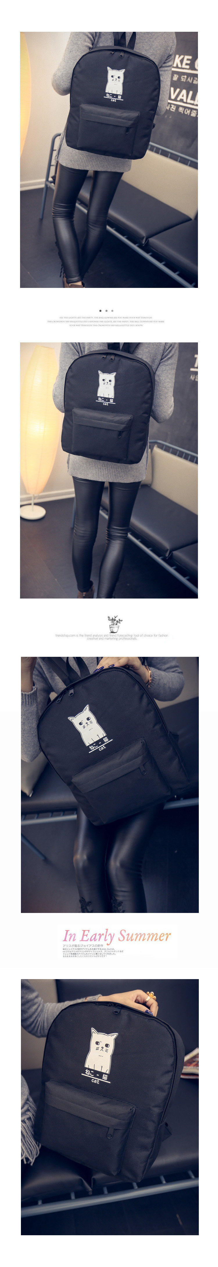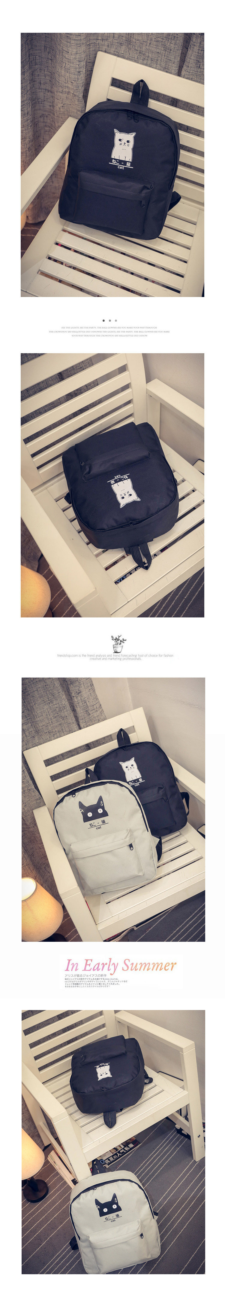 日本猫双背原宿风简约帆布背包 男女百搭个性大容量学院风书包