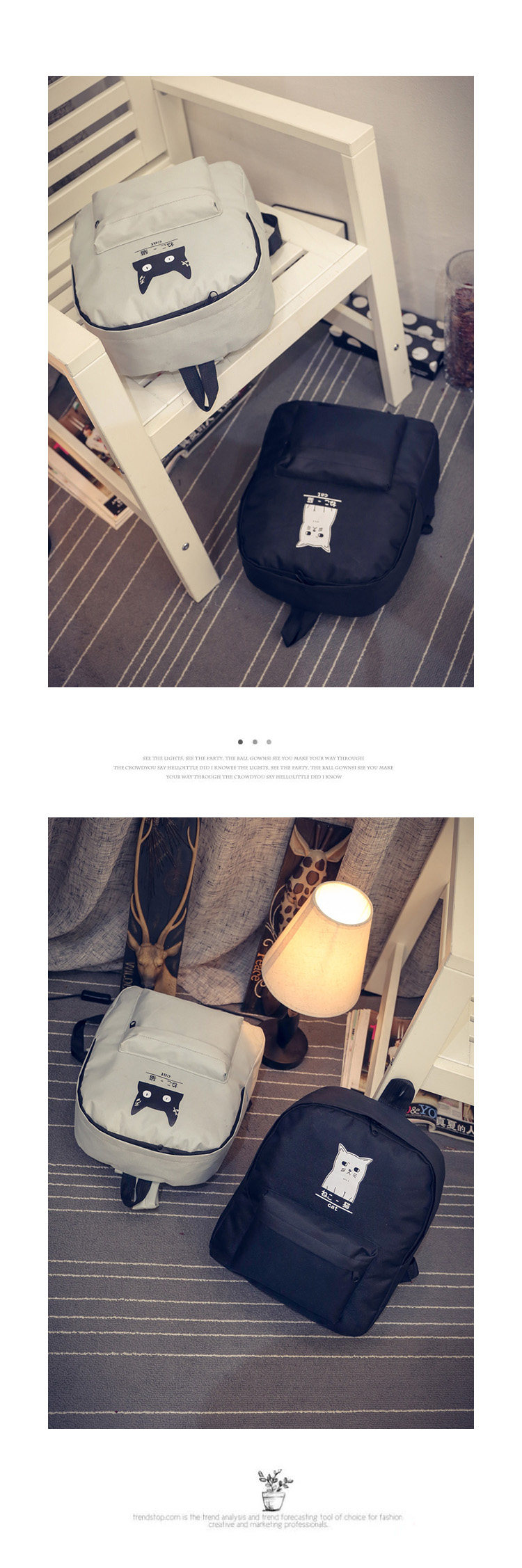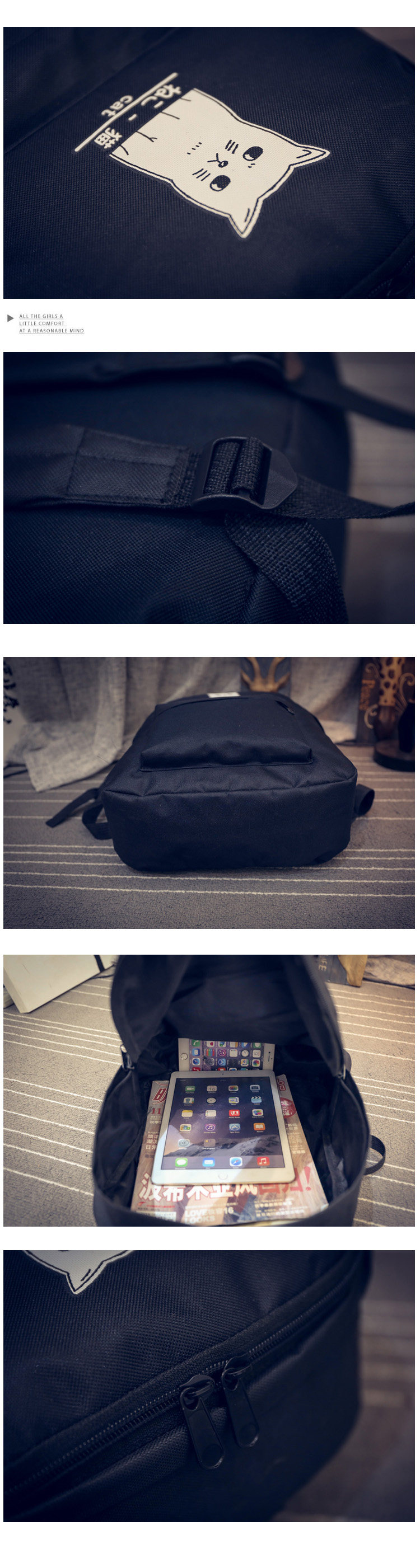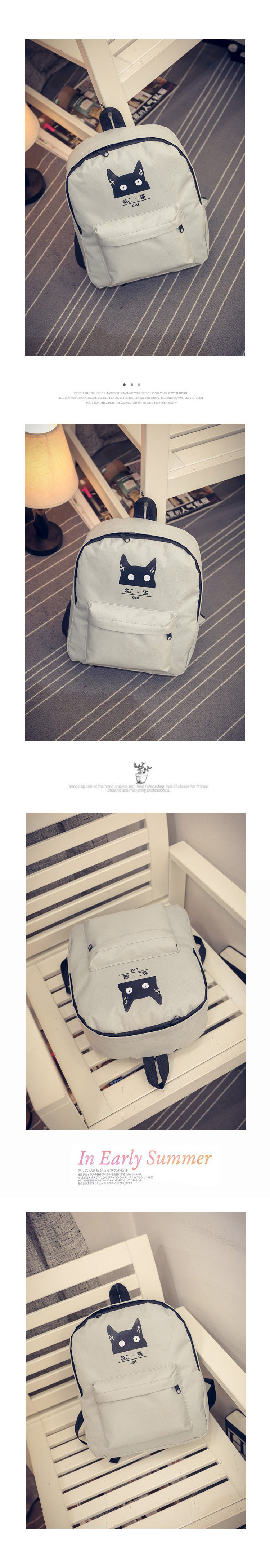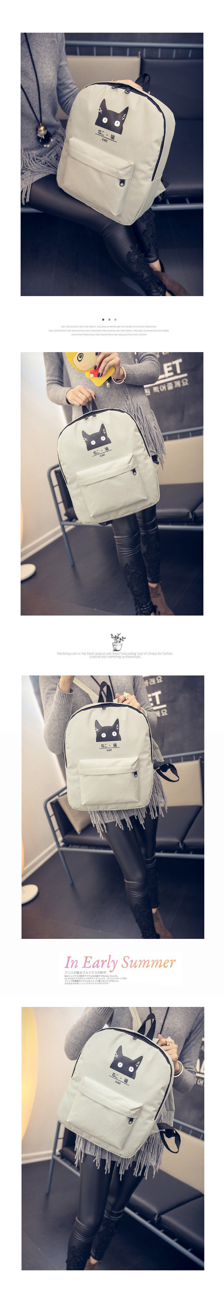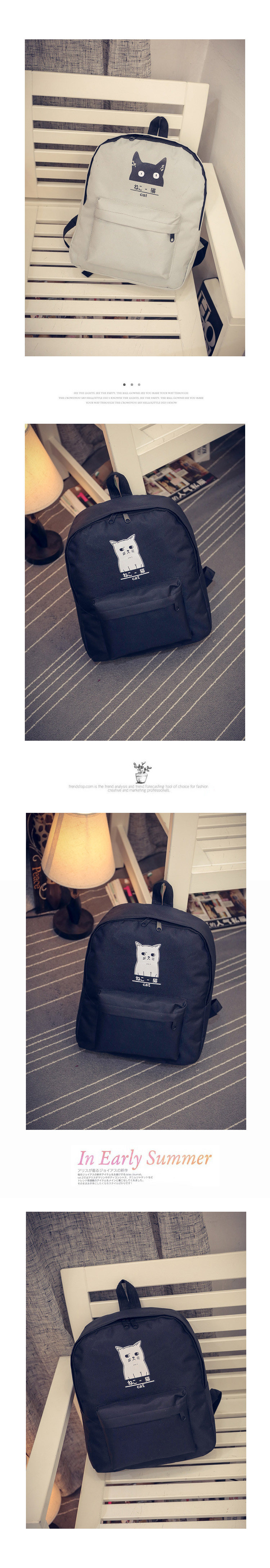 日本猫双背原宿风简约帆布背包 男女百搭个性大容量学院风书包