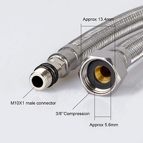HOMEIDEAS 32-Inch Faucet Connector 3/8-Inch Female Compression Thread x M10 Male Stainless Steel Braided Supply Hose Connector Pack of 2(1 Pair)