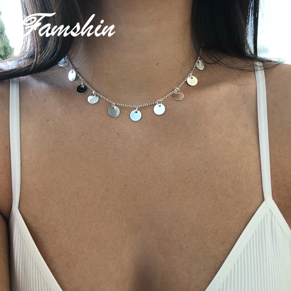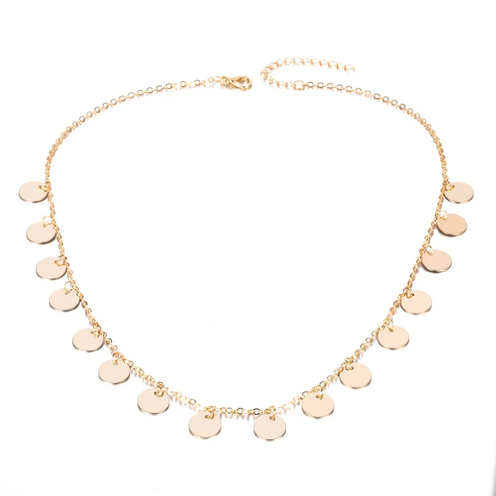 2018 New Design:Gold Color Sequins Coins Tassel Choker Necklace...