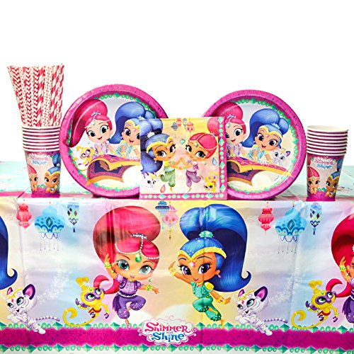 -. Title : Shimmer and Shine Party Supplies Pack for 16 Guests: Straws, Dinner Plates, Luncheon Napkins, Cups, and Table Cover