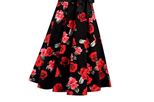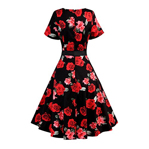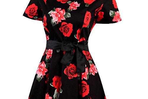 Elegant Dresses, Budding Joy Vintage Classy Floral Short Sleeve Party Picnic Party Cocktail Dress with Ribbon Belt (Black&Red) Clothing Size Chart(approx) Length:(S)39.37 inches, (M)39.76 inches, (L)40.16 inches, (XL)40.55 inches, (2XL)40.95 inches