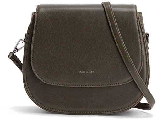 Saddle bag with adjustable and removable strap. Flap with magnetic snap closure and back slit pocket. Three interior compartments, center with zipper closure. INTERIOR: smartphone pocket, logo-embossed Dwell tag. 100% recycled nylon lining.Feature