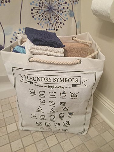 Large 100% Cotton Canvas Heavy Duty Laundry Bag with drawstring and laundry symbols