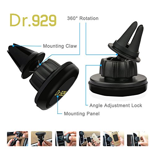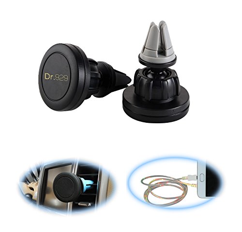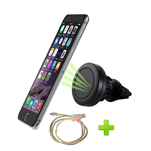 DR 929 360° Universal Air Vent Magnetic Cell Phone Mount Cradle With LED Light Micro USB Cable-Vent Clip Holder Fits iPhone 6 Plus Samsung Galaxy Note Nexus LG Nokia One plus HTC & Any Smartphone