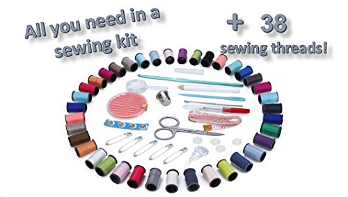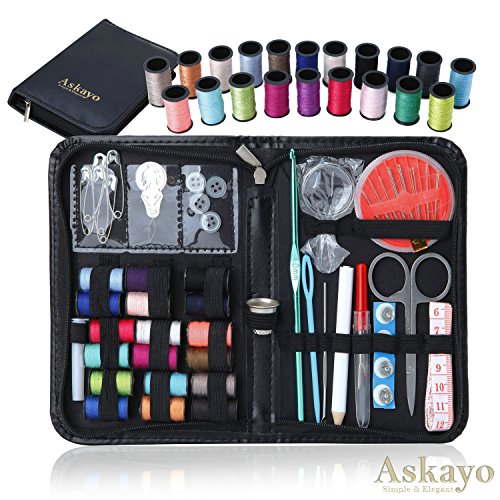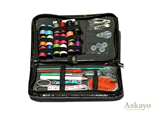 Askayo Sewing Clothing Repair Kit with Needles, Scissors, Thimble, 38-Count Colored Thread Spools and Zipper Carry Case