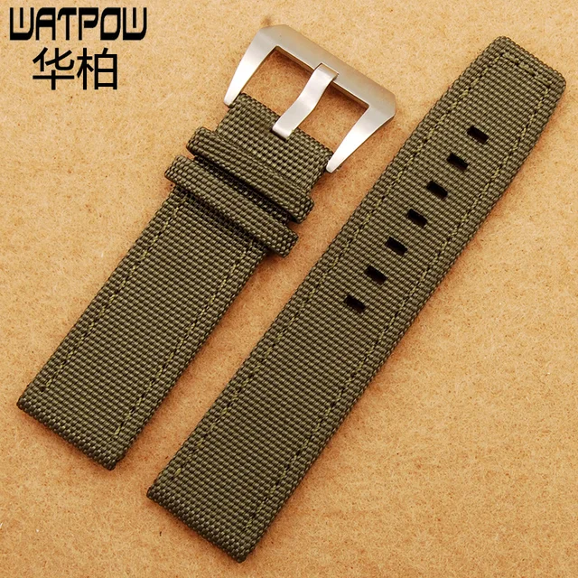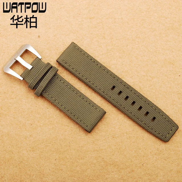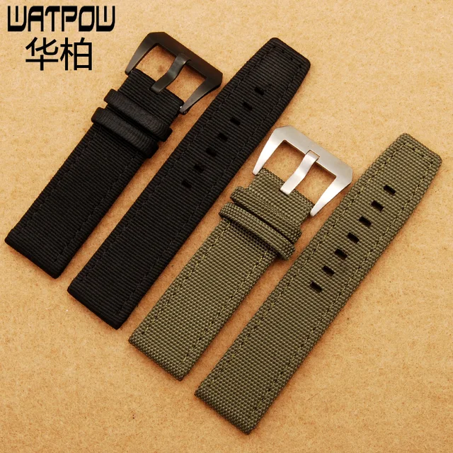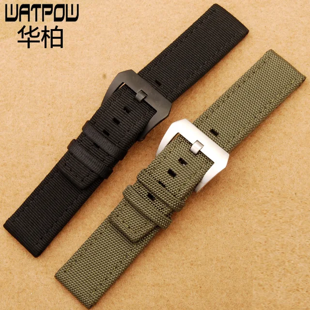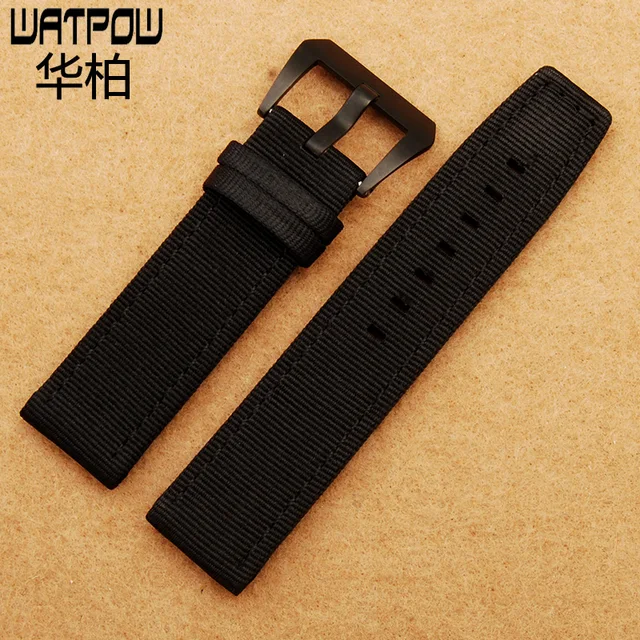 | [해외]나일론 가죽 검은 갈색 핀 버클 22 미리메터 시계 스트랩 파네 시계 액세서리 남성 여성 시계 줄 |